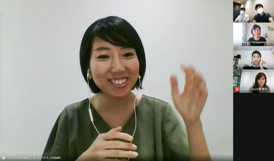 檜垣 友映 氏(以下、敬称略):私はアクタスの中でも新入社員として入社しております。主な業務として、スタッフに向けた動画企画や、アルバイトを始めとした新人向けの研修運営を担当しています。今回のエビリーさんとのお取り組みでは窓口役を担当しています。